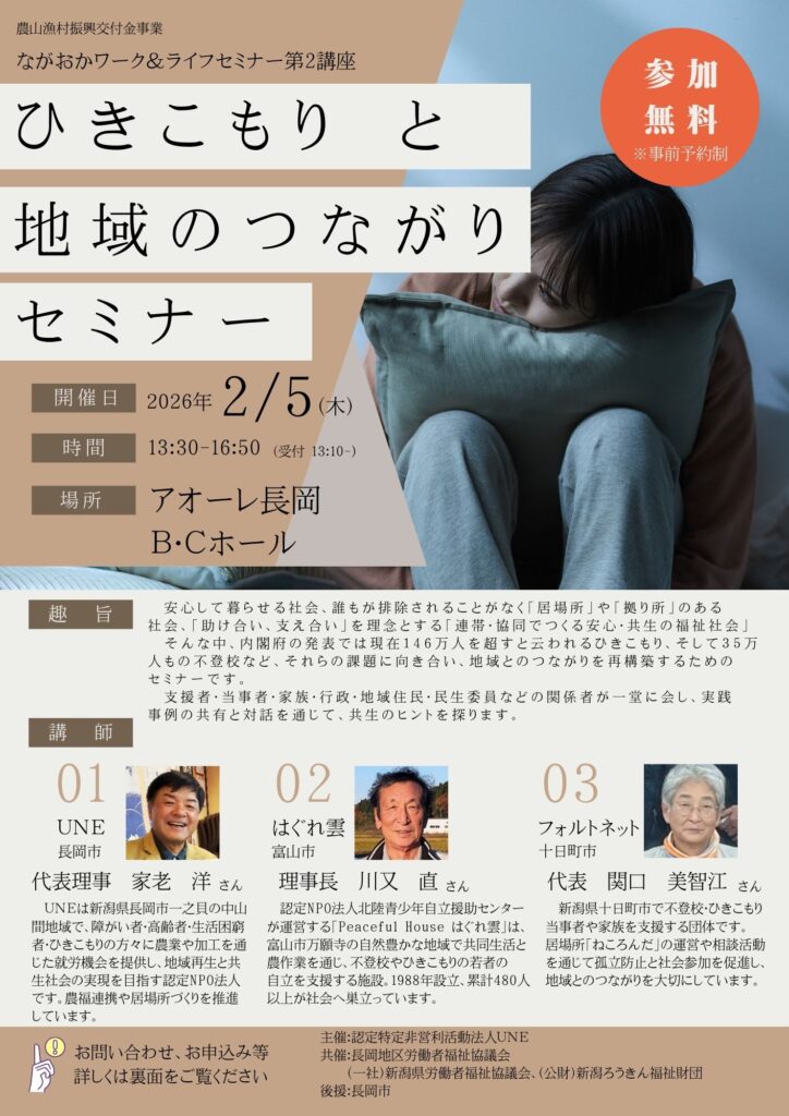 電話0258-86-0111(平日9時~17時) または nagaokarouhukukyou@gmail.com