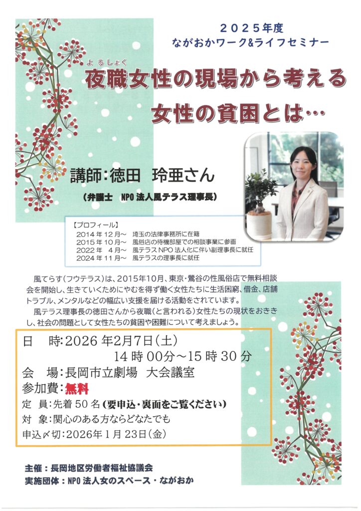開催団体:NPO法人女のスペース・ながおか